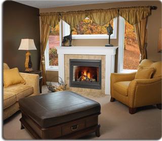 Direct vent gas fireplace. Concealed, easy to use controls for trouble free performance. Available in clean burning, convenient natural gas or propane. Turn on and off at the flick of a switch.
